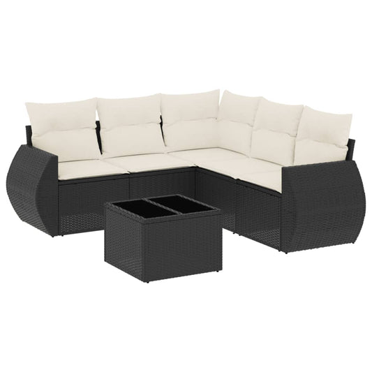 Set Divano da Giardino 6 pz con Cuscini Nero in Polyrattan