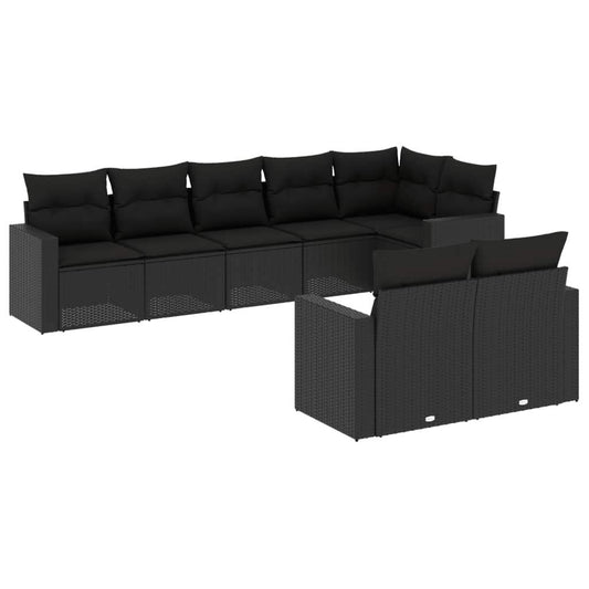 Set Divani da Giardino con Cuscini 8 pz Nero in Polyrattan