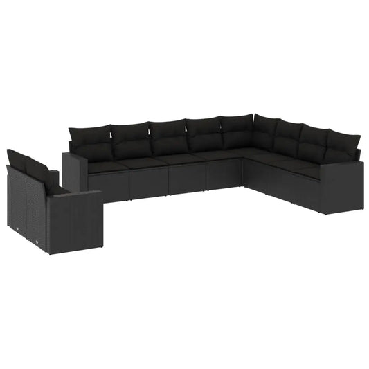 Set Divani da Giardino 10pz con Cuscini in Polyrattan Nero