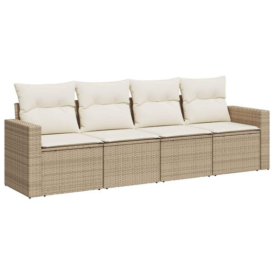 Set Divano da Giardino 4 pz con Cuscini Beige in Polyrattan