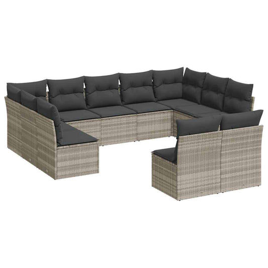 Set Divano Giardino 12 pz con Cuscini Grigio Chiaro Polyrattan