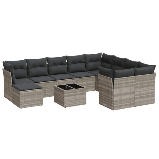 Set Divano Giardino 12 pz con Cuscini Grigio Chiaro Polyrattan