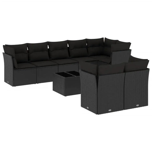 Set Divani da Giardino 9 pz con Cuscini Nero in Polyrattan