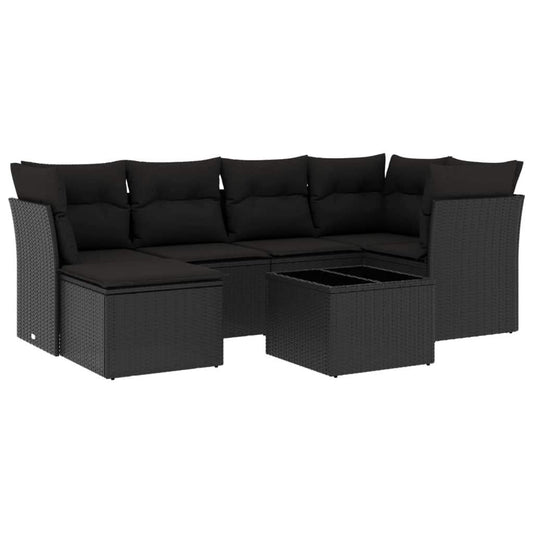 Set Divani da Giardino con Cuscini 7pz Nero Polyrattan