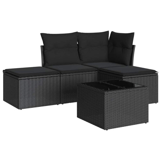 Set Divani da Giardino 4 pz con Cuscini Nero in Polyrattan