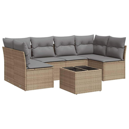 Set Divani da Giardino 7 pz con Cuscini Beige in Polyrattan