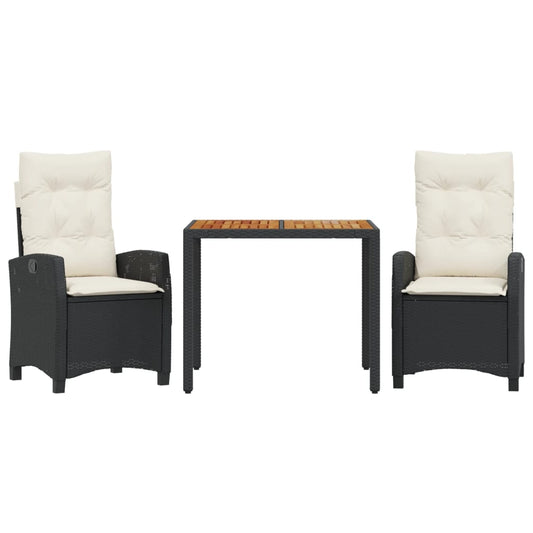 Set da Pranzo da Giardino 3 pz con Cuscini Nero in Polyrattan