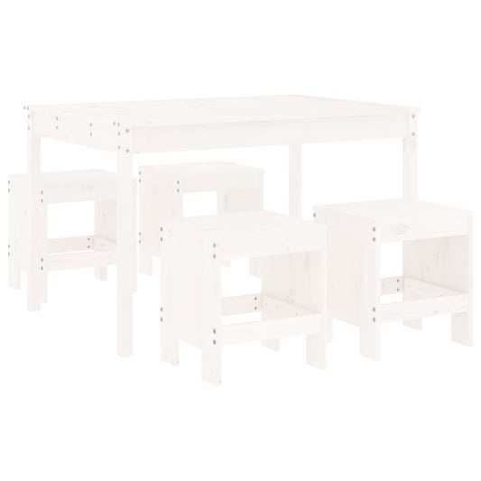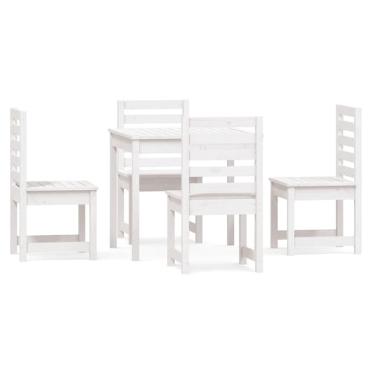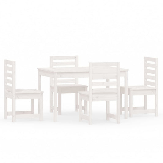 Set da Pranzo per Giardino 5pz Bianco in Legno Massello di Pino