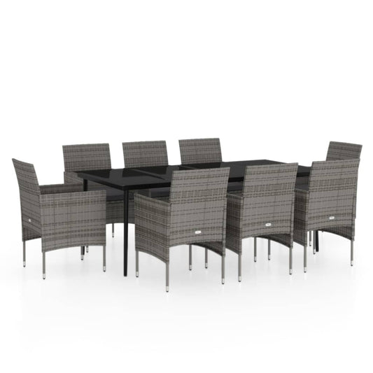 Set da Pranzo da Giardino 9 pz con Cuscini Grigio