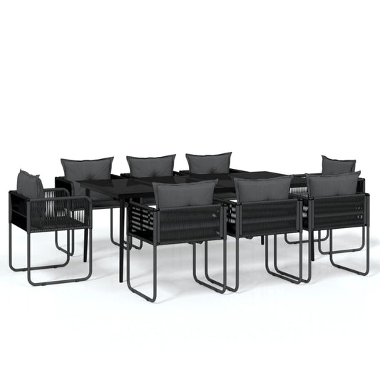 Set da Pranzo da Giardino 9 pz con Cuscini Nero in Polyrattan