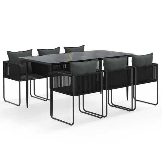 Set da Pranzo da Giardino 7 pz Nero con Cuscini in Polyrattan