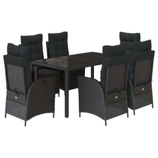 Set da Pranzo da Giardino 7 pz Nero con Cuscini in Polyrattan