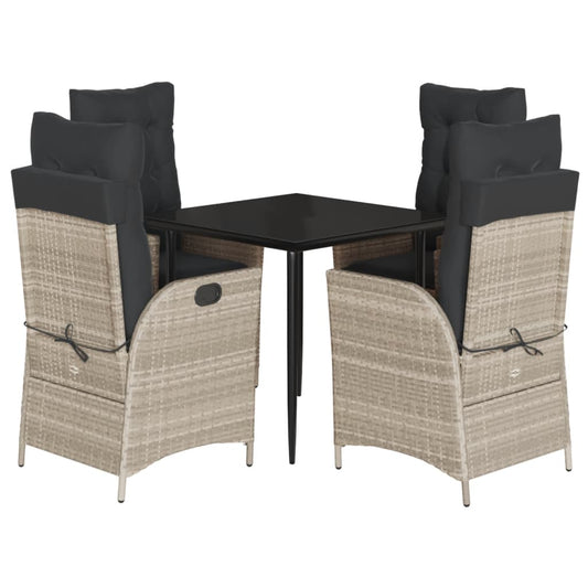 Set Pranzo da Giardino 5pz con Cuscini Grigio Chiaro Polyrattan