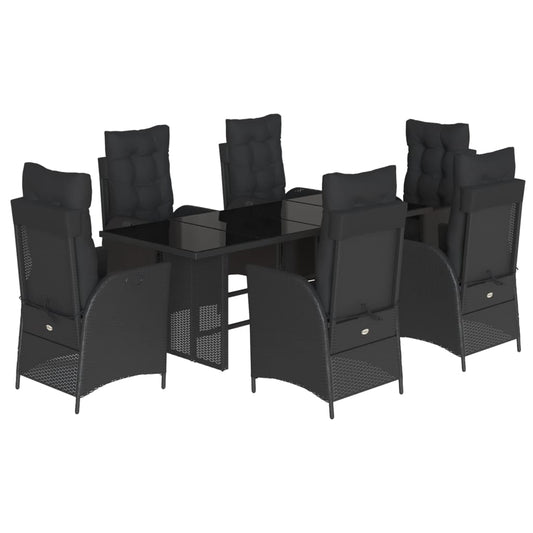Set da Pranzo da Giardino 7 pz Nero con Cuscini in Polyrattan