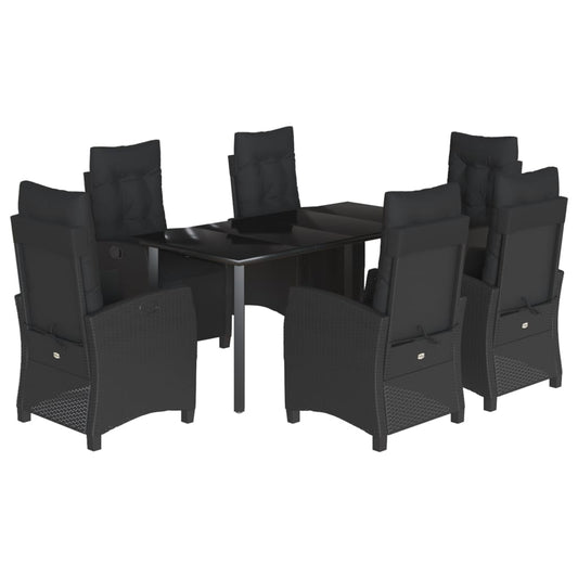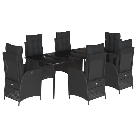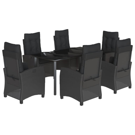Set da Pranzo da Giardino 7 pz Nero con Cuscini in Polyrattan