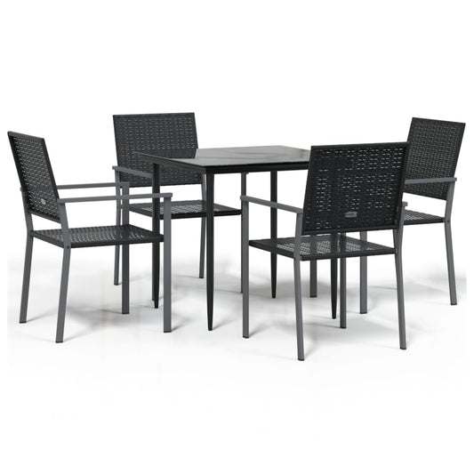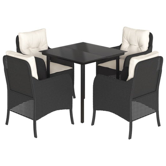 Set da Pranzo da Giardino 5 pz Nero con Cuscini in Polyrattan