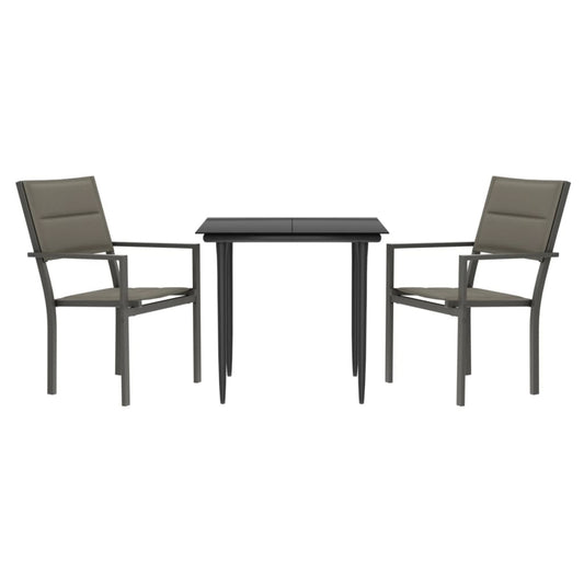 Set da Pranzo da Giardino 3 pz Nero in Acciaio e Textilene