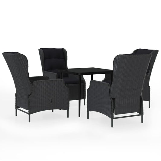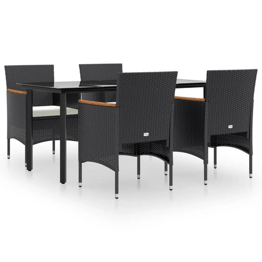 Set da Pranzo da Giardino 5 pz Nero con Cuscini in Polyrattan