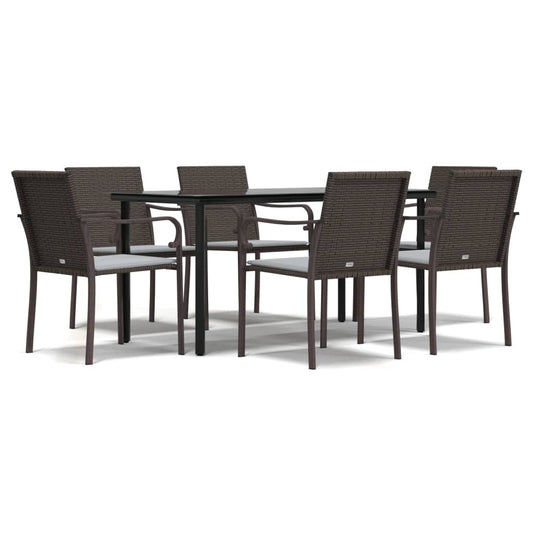 Set da Pranzo da Giardino 7 pz con Cuscini Polyrattan e Vetro