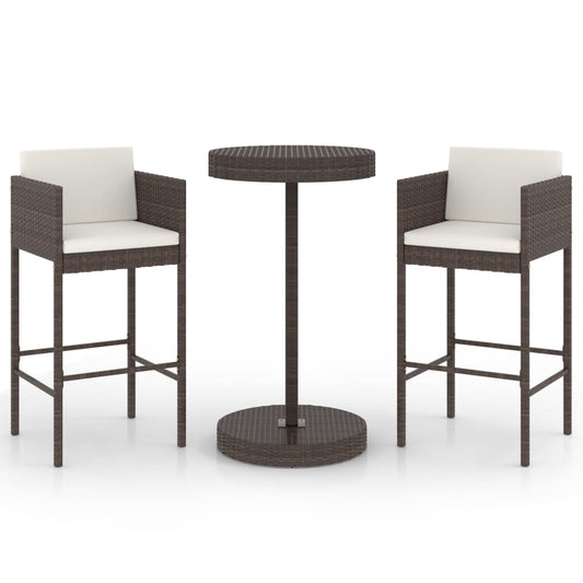 Set Bar da Giardino 3 pz con Cuscini Polyrattan Marrone