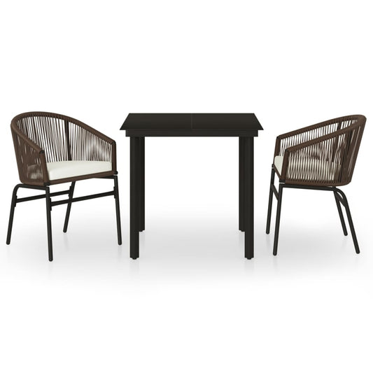 Set da Pranzo da Giardino 3 pz con Cuscini Marrone e Nero