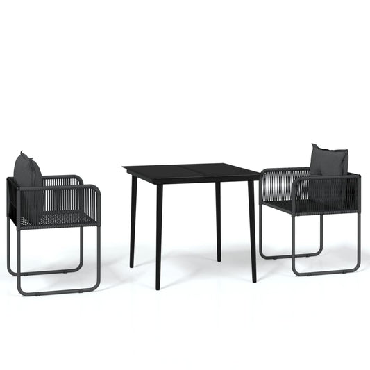 Set da Pranzo da Giardino 3 pz Nero in Rattan PVC