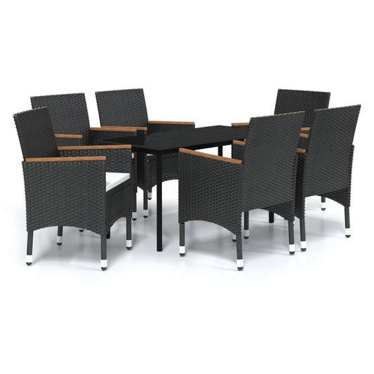 Set da Pranzo da Giardino 7 pz con Cuscini Nero