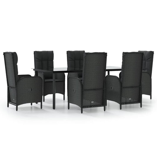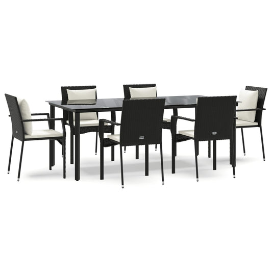 Set da Pranzo da Giardino 7 pz Nero con Cuscini in Polyrattan