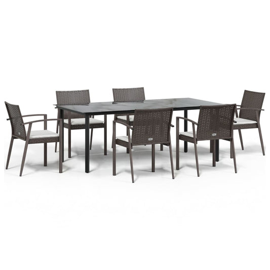 Set Pranzo da Giardino 7 pz con Cuscini in Polyrattan e Acciaio
