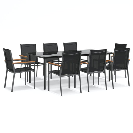 Set da Pranzo da Giardino 9 pz Nero in Textilene e Acciaio