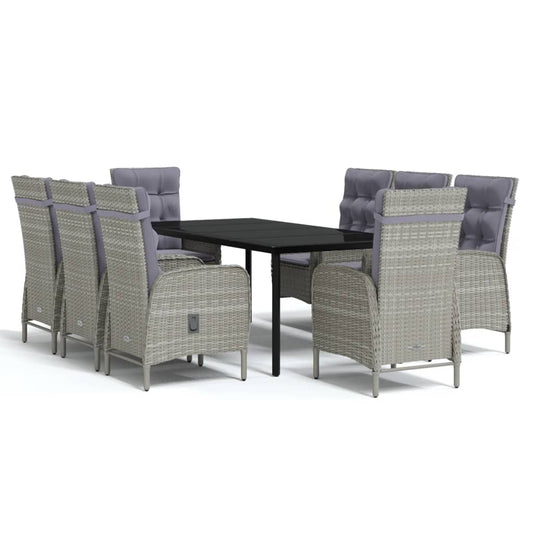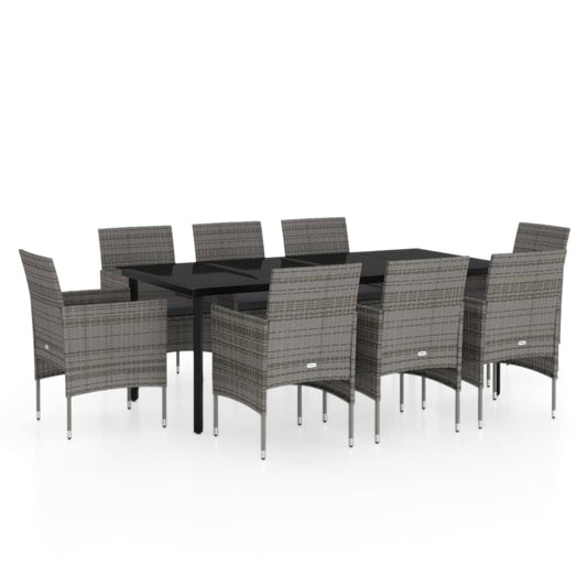 Set da Pranzo per Giardino 9 pz con Cuscini Grigio e Nero