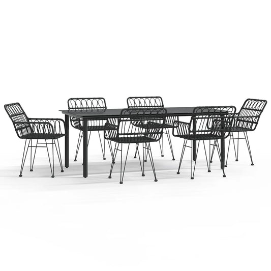 Set da Pranzo da Giardino 7 pz Nero in Rattan PVC