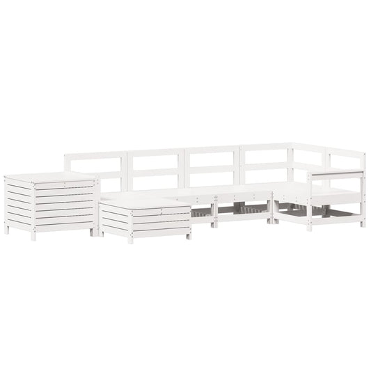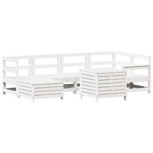 Set Divani da Giardino 7 pz Bianco in Legno Massello di Pino