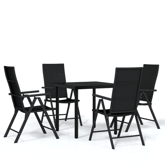 Set da Pranzo da Giardino 5 pz Nero in Polyrattan