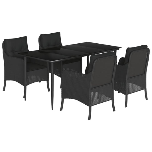 Set da Pranzo da Giardino 5 pz Nero con Cuscini in Polyrattan