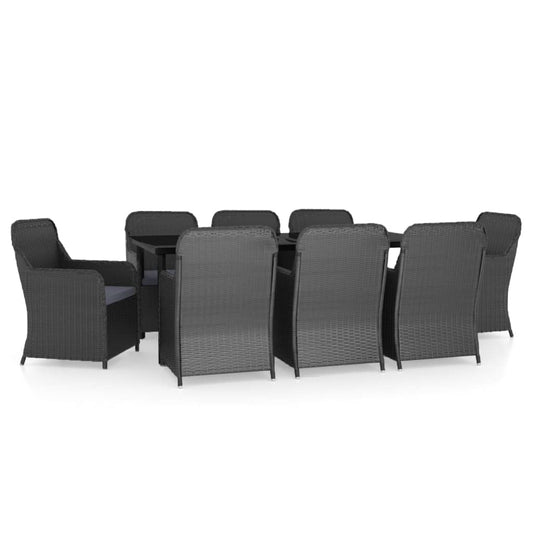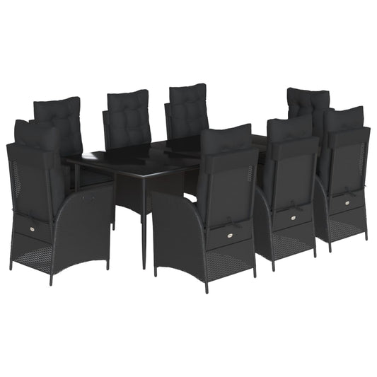 Set da Pranzo da Giardino 9 pz con Cuscini Nero in Polyrattan