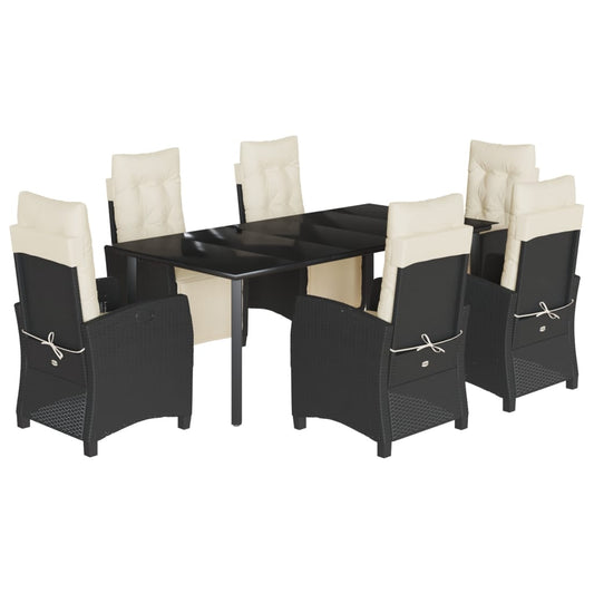 Set da Pranzo da Giardino 7 pz Nero con Cuscini in Polyrattan