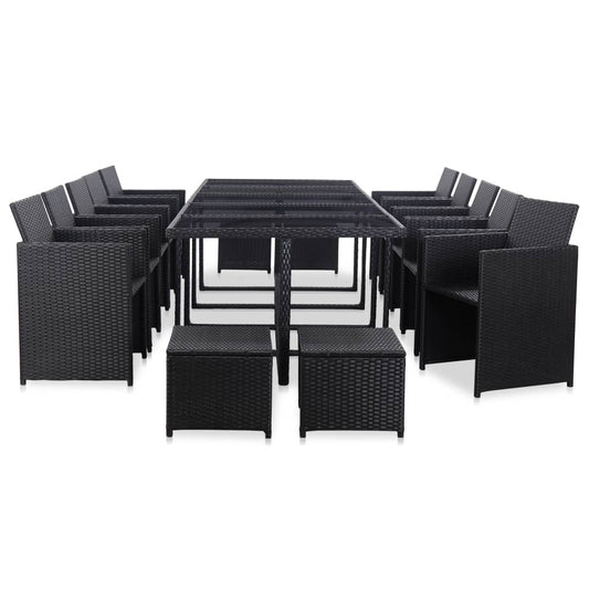 Set da Pranzo da Giardino 15 pz con Cuscini in Polyrattan Nero
