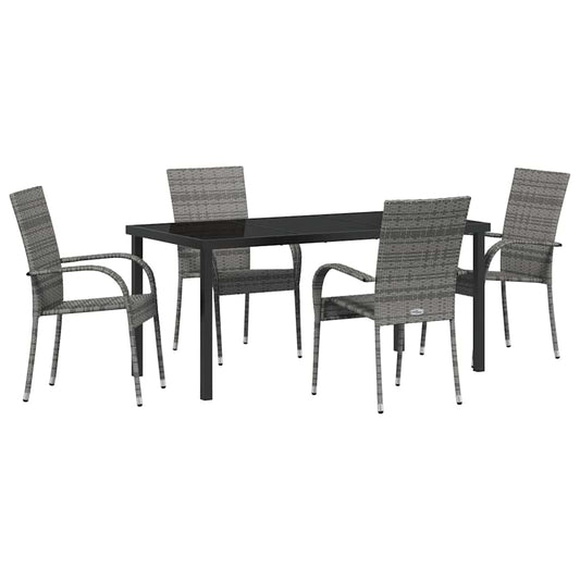 Set da Pranzo per Giardino con cuscino 5 pcs Grigio Poly Rattan