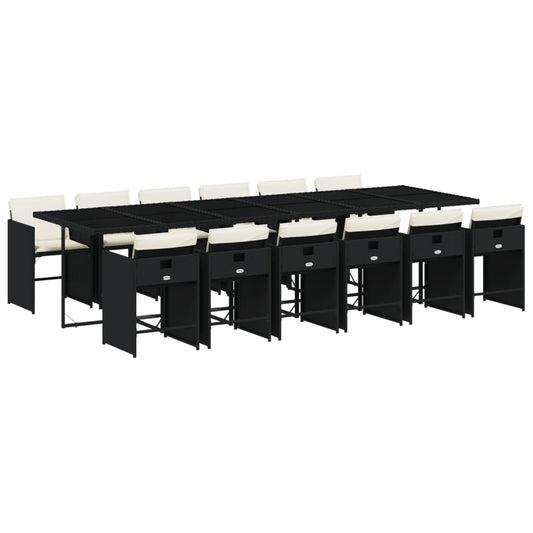 15 pc Garden Dining Set with Black Polyrattan Cushions
