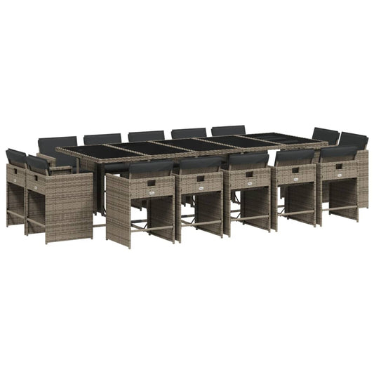 17-piece Garden Dining Set with Gray Polyrattan Cushions