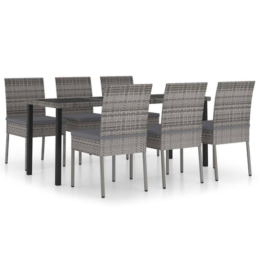 7 piece Garden Dining Furniture Set in Gray Polyrattan