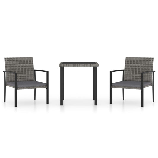 Set da Pranzo da Giardino 3 pz in Polyrattan Grigio