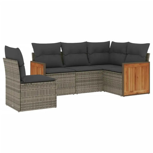 5 pc Garden Sofa Set with Gray Polyrattan Cushions