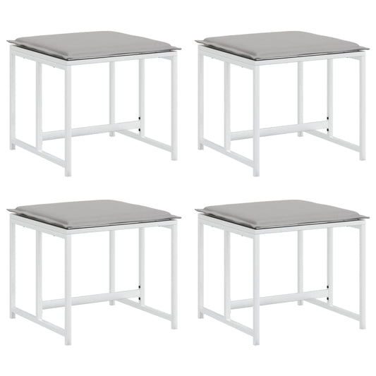 Sgabelli Giardino con Cuscini 4 pz Bianchi Acciaio e Textilene