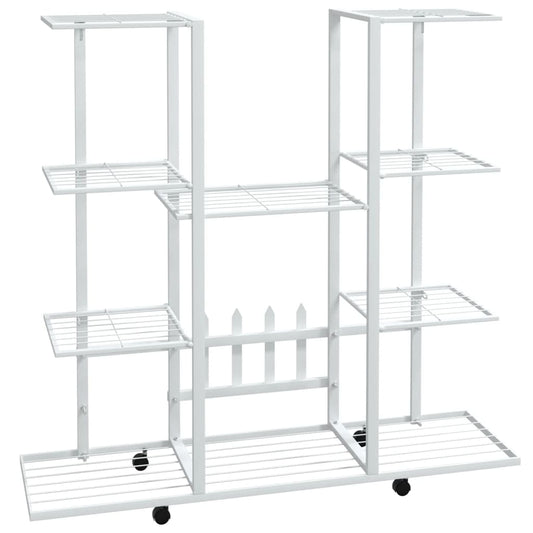 Fioriera a 4 Piani con Ruote 44x23x80 cm Ferro Bianco