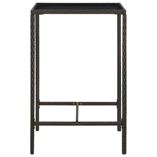 Tavolo da Bar per Esterni Marrone 130x60x110cm Polyrattan Vetro