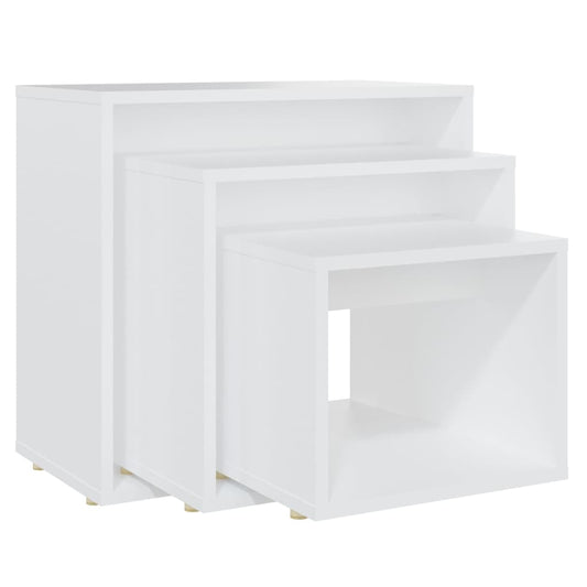 Tavolini Impilabili 3 pz Bianchi in Legno Multistrato
