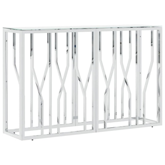 Tavolino Consolle Argento 110x30x70 cm in Acciaio Inox e Vetro