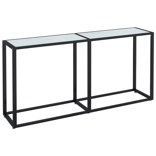 Tavolo Consolle Bianco Marmo 160x35x75,5 cm in Vetro Temperato
